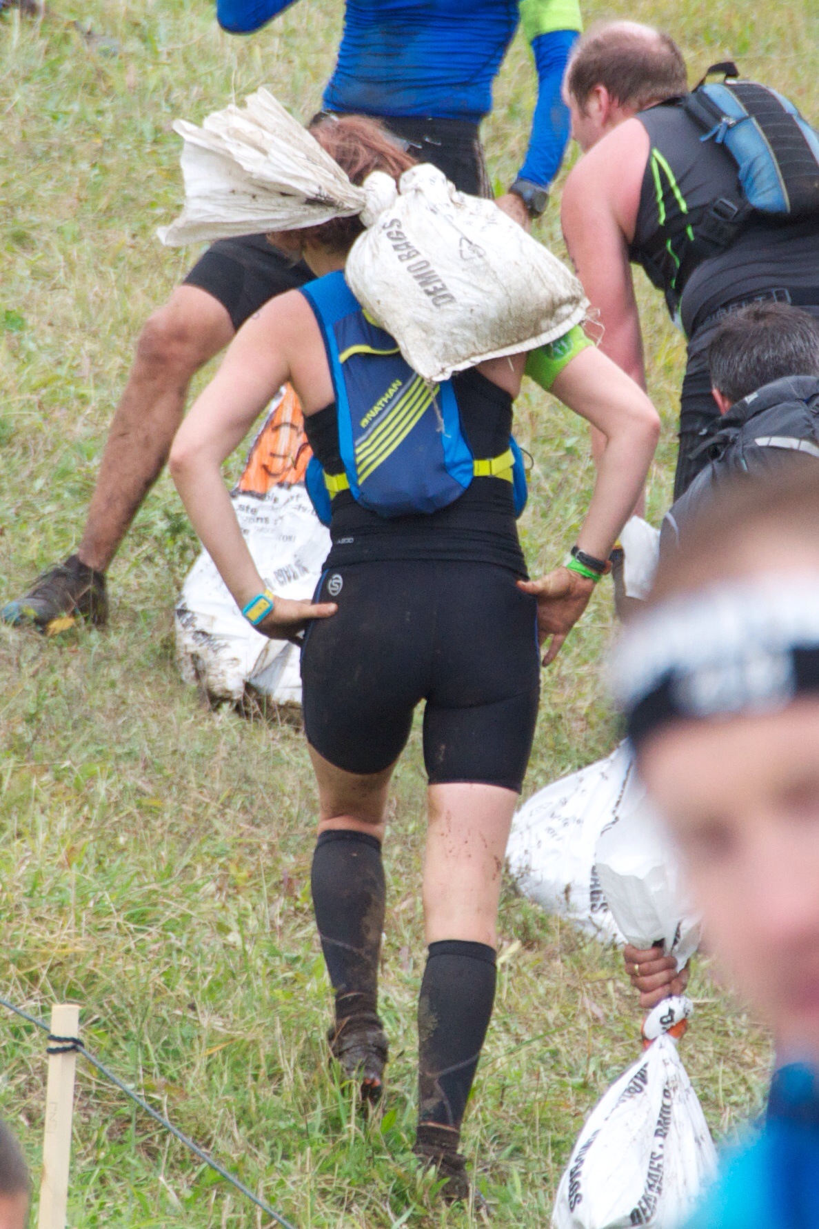 2. Speaking of barbed wire, the construction just so happens to be perfect for obstacle course racing. There’s nothing to snag on the bag in the barbed wire and you can stick your nutrition in the drawstring pockets in the front… no zippers to get muddy and stuck. Plus, the extra pocket for wrappers is awesome: littering will get you DQ’d. The material is light and unlike other packs, holds almost no water. Yet, even though I caught it on the low slung barber wire, it came right off, didn’t damage and cleaned up like new.