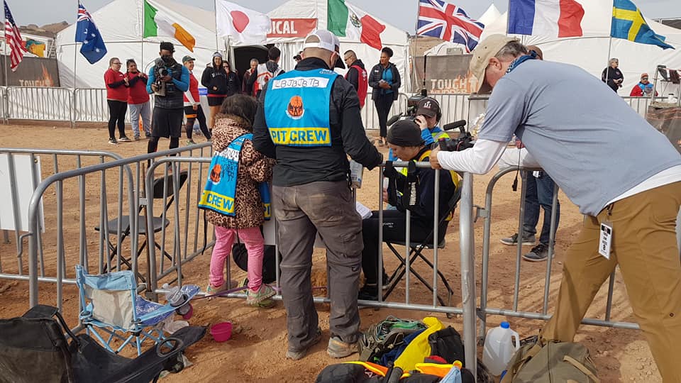 I like to have things ready for my pit crew for situations I can see arising. Sand storm? Hand me these goggles. Colder than anticipated? Start with the items in this bag and then move to this bag if I start turning blue. Encourage your spouse to go over all the “if’s and when’s” in advance, write it down and go over it with you in detail before the gun goes off.